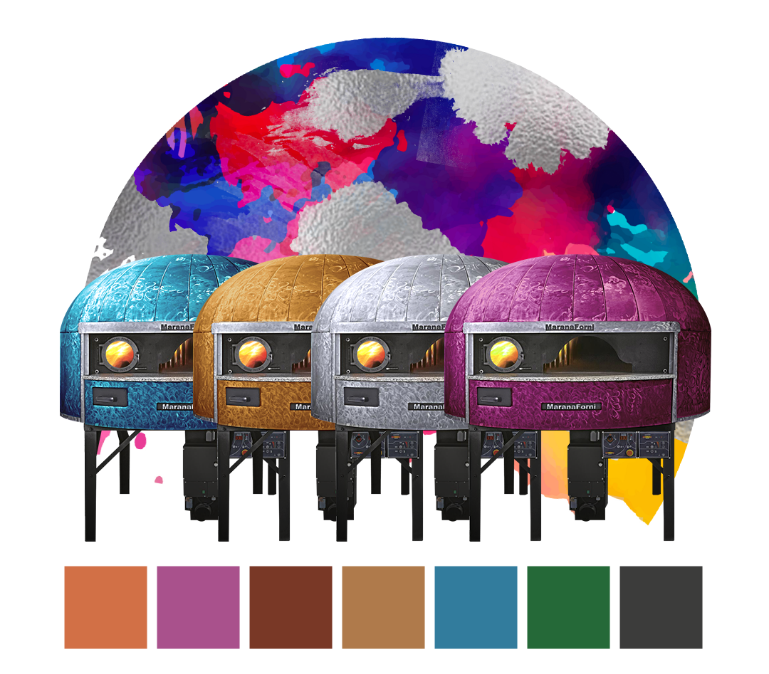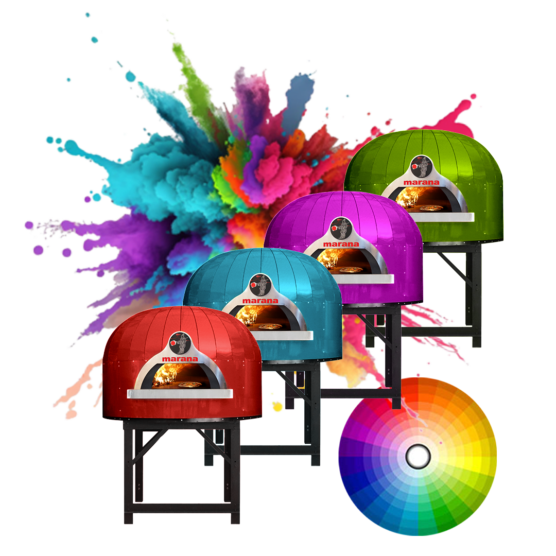 Seven different colors to choose from, all in frosted metal with iridescent reflections depending on the lights in your room. For an original oven, with an unmistakable character. For years they have been the absolute protagonists of the various pizza championships where Marana Forni is the official technical supplier. The Colors domes can pass through any access of just 70 cm wide, and can therefore be installed on site already colored.